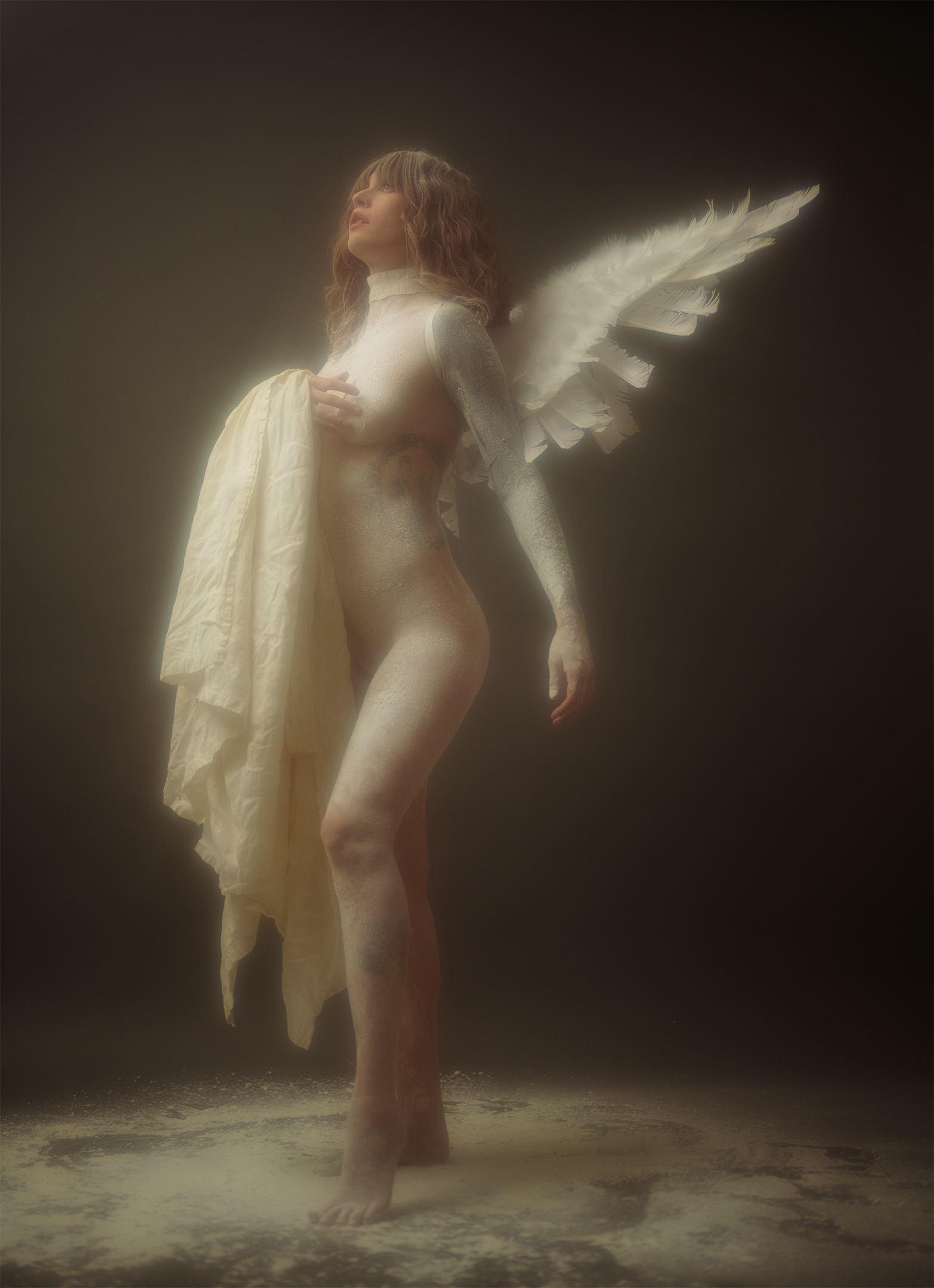 Collaborating with people is really amazing. I had some angel wings ready to go and I think that the photos would have been great with just those. But, Hairbackwards arrived with this fabric and an idea to drape it over herself, almost like a toga and it really elevated the images. I am both amazed and delighted how small things can make such a huge impact. It’s a situation where it makes no sense, but 1 + 1 = 3.